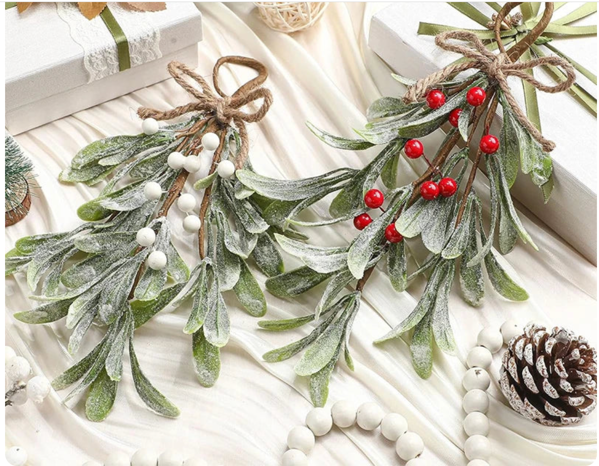 Our mistletoe features carefully crafted details including frosted green leaves and glossy red berries that capture the classic look of traditional mistletoe. While it is artificial (which is actually a benefit - no mess, no toxicity, no wilting!), customers consistently tell us they're impressed by how realistic and beautiful it looks in person. The quality materials and attention to detail ensure it adds authentic holiday charm to your décor.